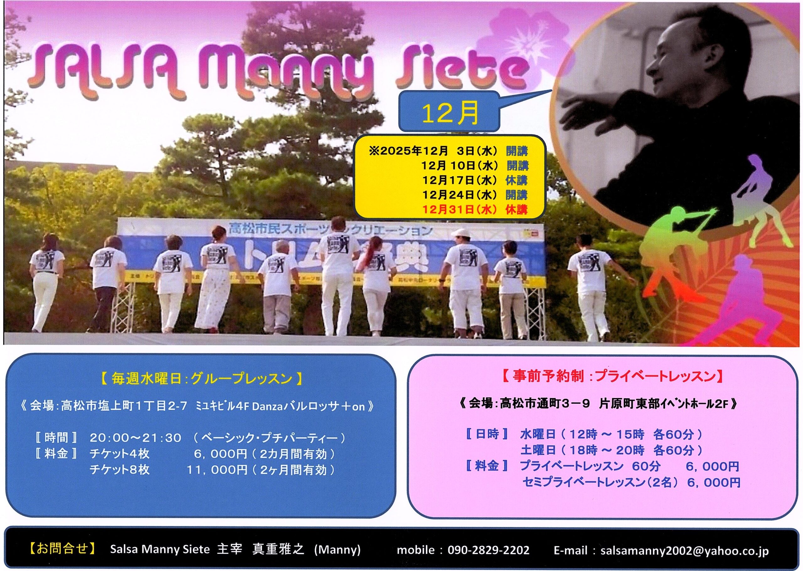 2025年12月「Salsa Manny Siete」レッスンのご案内です!