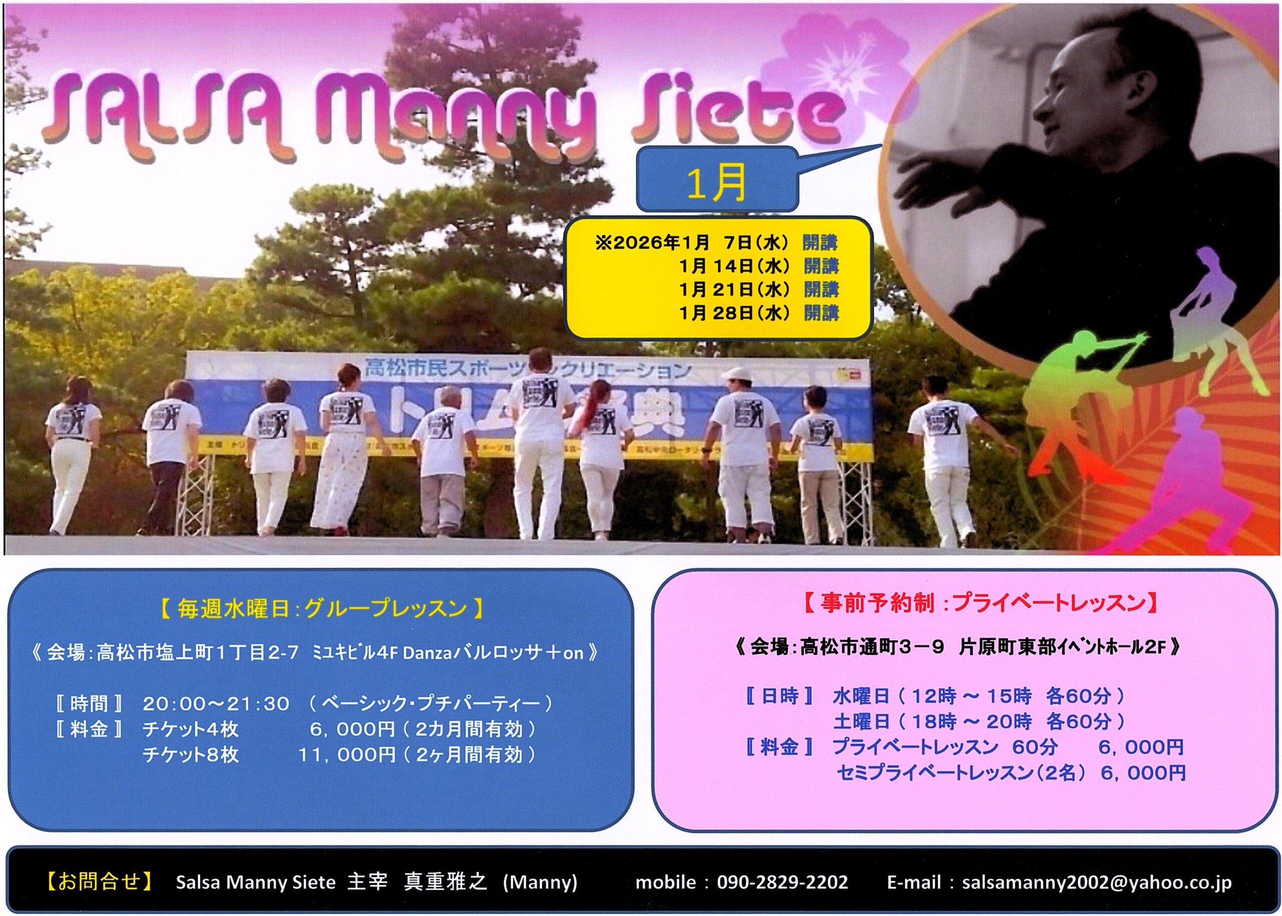 2026年1月「Salsa Manny Siete」レッスンのご案内です!